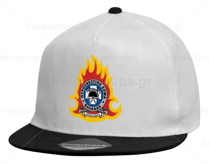 Πυροσβεστικό σώμα Ελλάδος σκούρο, Καπέλο παιδικό Flat Snapback, Λευκό (100% ΒΑΜΒΑΚΕΡΟ, ΠΑΙΔΙΚΟ, UNISEX, ONE SIZE)