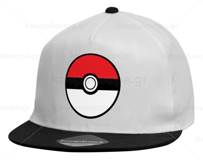 Pokemon ball, Καπέλο παιδικό Flat Snapback, Λευκό (100% ΒΑΜΒΑΚΕΡΟ, ΠΑΙΔΙΚΟ, UNISEX, ONE SIZE)