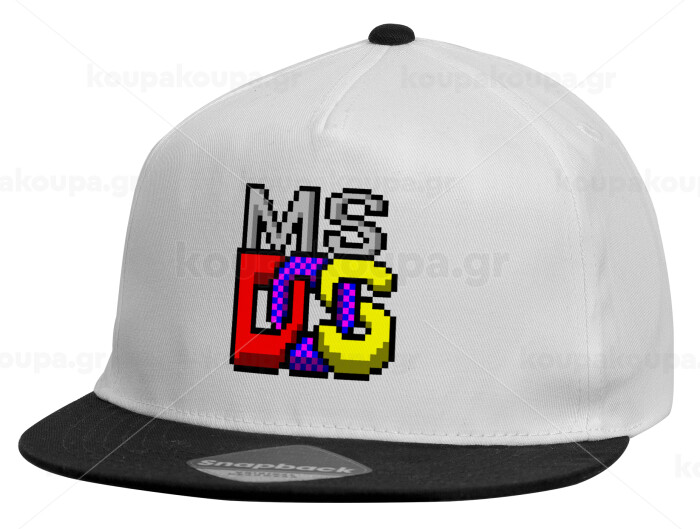 MsDos, Καπέλο παιδικό Flat Snapback, Λευκό (100% ΒΑΜΒΑΚΕΡΟ, ΠΑΙΔΙΚΟ, UNISEX, ONE SIZE)