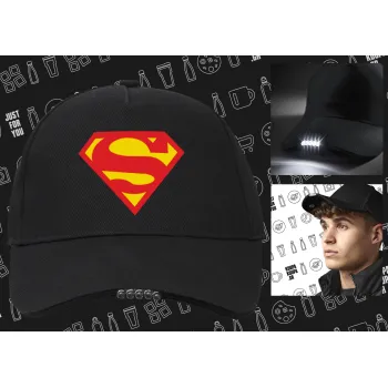 Superman, Καπέλο Εργασίας & Δραστηριοτήτων με LED Φως - Ιδανικό για Νύχτα & Χαμηλό Φωτισμό (100% ΒΑΜΒΑΚΕΡΟ, ΕΝΗΛΙΚΩΝ, UNISEX)