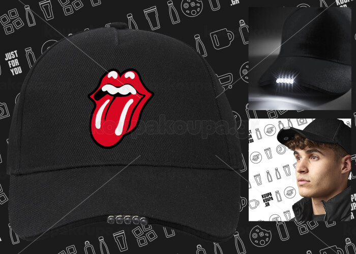 Rolling Stones Kiss, Καπέλο Εργασίας & Δραστηριοτήτων με LED Φως - Ιδανικό για Νύχτα & Χαμηλό Φωτισμό (100% ΒΑΜΒΑΚΕΡΟ, ΕΝΗΛΙΚΩΝ, UNISEX)