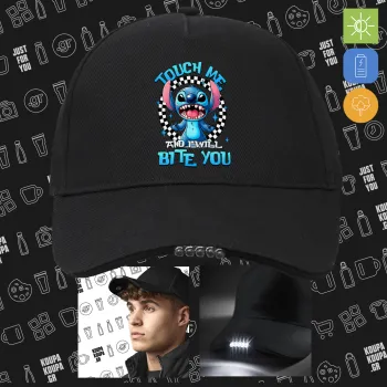 Stitch Touch Me And I Will Bite You, Καπέλο Εργασίας & Δραστηριοτήτων με LED Φως - Ιδανικό για Νύχτα & Χαμηλό Φωτισμό (100% ΒΑΜΒΑΚΕΡΟ, ΕΝΗΛΙΚΩΝ, UNISEX)