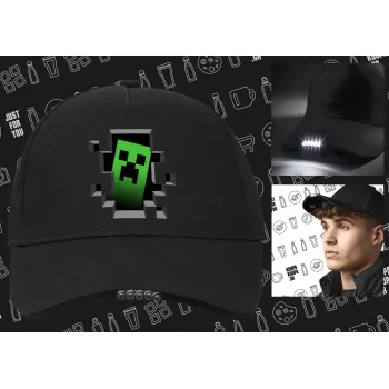 Minecraft creeper, Καπέλο Εργασίας & Δραστηριοτήτων με LED Φως - Ιδανικό για Νύχτα & Χαμηλό Φωτισμό (100% ΒΑΜΒΑΚΕΡΟ, ΕΝΗΛΙΚΩΝ, UNISEX)