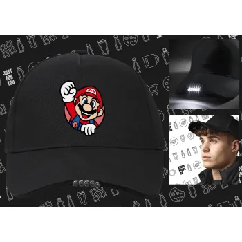 Super mario win, Καπέλο Εργασίας & Δραστηριοτήτων με LED Φως - Ιδανικό για Νύχτα & Χαμηλό Φωτισμό (100% ΒΑΜΒΑΚΕΡΟ, ΕΝΗΛΙΚΩΝ, UNISEX)