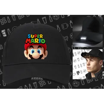 Super mario, Καπέλο Εργασίας & Δραστηριοτήτων με LED Φως - Ιδανικό για Νύχτα & Χαμηλό Φωτισμό (100% ΒΑΜΒΑΚΕΡΟ, ΕΝΗΛΙΚΩΝ, UNISEX)