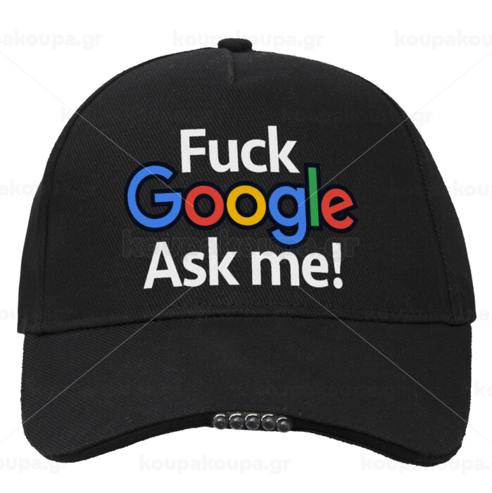 Fuck Google, Ask me!, Καπέλο Εργασίας & Δραστηριοτήτων με LED Φως - Ιδανικό για Νύχτα & Χαμηλό Φωτισμό (100% ΒΑΜΒΑΚΕΡΟ, ΕΝΗΛΙΚΩΝ, UNISEX)