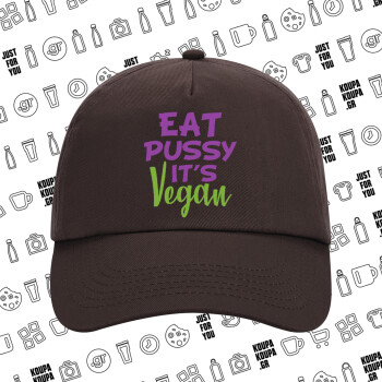 EAT pussy it's vegan, Καπέλο Ενηλίκων Baseball, 100% Βαμβακερό, Chocolate, Καφέ (ΒΑΜΒΑΚΕΡΟ, ΕΝΗΛΙΚΩΝ, UNISEX, ONE SIZE)