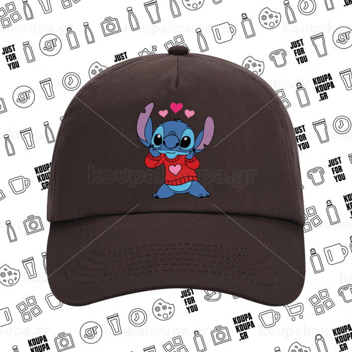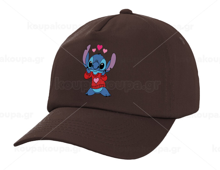 Stitch heart, Καπέλο Ενηλίκων Baseball, 100% Βαμβακερό, Chocolate, Καφέ (ΒΑΜΒΑΚΕΡΟ, ΕΝΗΛΙΚΩΝ, UNISEX, ONE SIZE)