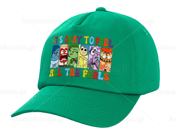 Inside Out It's Okay To Feel All The Feels , Καπέλο Ενηλίκων Baseball, 100% Βαμβακερό, Πράσινο (ΒΑΜΒΑΚΕΡΟ, ΕΝΗΛΙΚΩΝ, UNISEX, ONE SIZE)