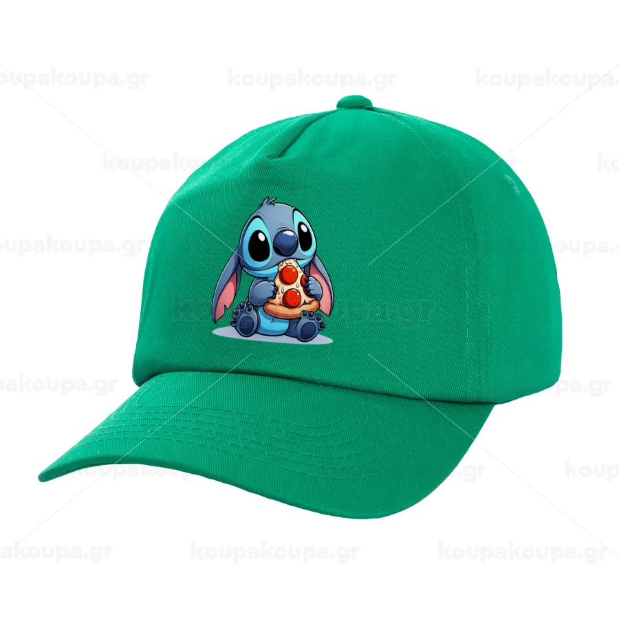 Stitch Pizza, Καπέλο Ενηλίκων Baseball, 100% Βαμβακερό, Πράσινο (ΒΑΜΒΑΚΕΡΟ, ΕΝΗΛΙΚΩΝ, UNISEX, ONE SIZE)