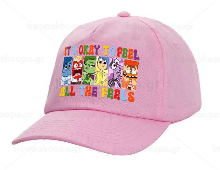 Inside Out It's Okay To Feel All The Feels , Καπέλο Ενηλίκων Baseball, 100% Βαμβακερό, ΡΟΖ (ΒΑΜΒΑΚΕΡΟ, ΕΝΗΛΙΚΩΝ, UNISEX, ONE SIZE)