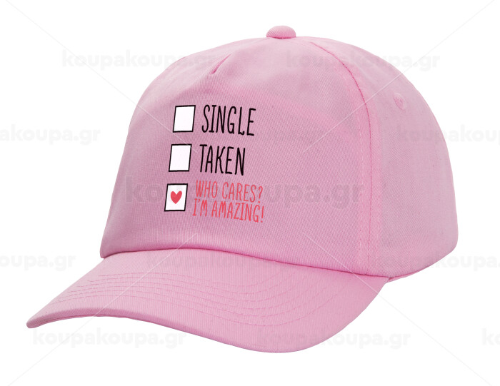 Single, Taken, Who cares i'm amazing, Καπέλο Ενηλίκων Baseball, 100% Βαμβακερό, ΡΟΖ (ΒΑΜΒΑΚΕΡΟ, ΕΝΗΛΙΚΩΝ, UNISEX, ONE SIZE)