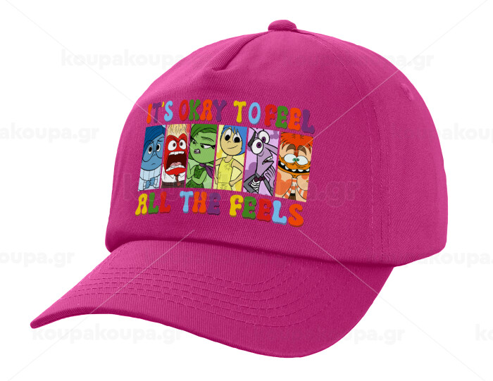 Inside Out It's Okay To Feel All The Feels , Καπέλο Ενηλίκων Baseball, 100% Βαμβακερό, Φούξια,(purple) (ΒΑΜΒΑΚΕΡΟ, ΕΝΗΛΙΚΩΝ, UNISEX, ONE SIZE)