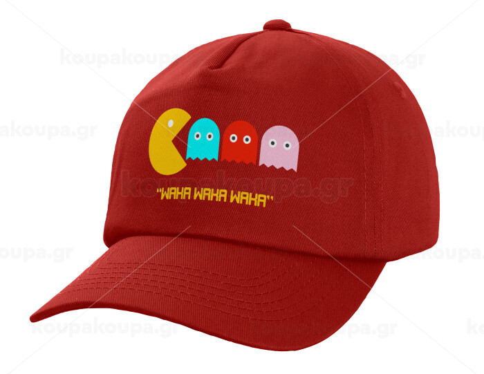 Pacman waka waka waka, Πεντάφυλλο Καπέλο Ενηλίκων Baseball, 100% Βαμβακερό, Κόκκινο (ΒΑΜΒΑΚΕΡΟ, ΕΝΗΛΙΚΩΝ, UNISEX, ONE SIZE)