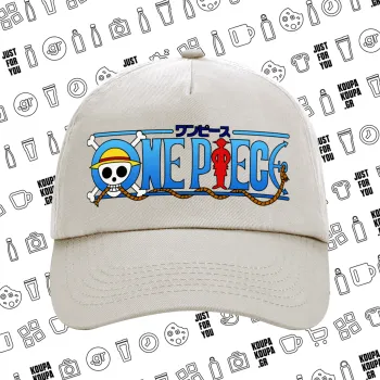 Onepiece logo, Μπεζ (SAND) Πεντάφυλλο Καπέλο Ενηλίκων Βαμβακερό (UNISEX, ONE SIZE)