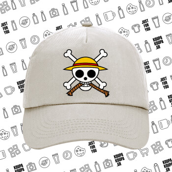 Onepiece skull, Μπεζ (SAND) Πεντάφυλλο Καπέλο Ενηλίκων Βαμβακερό (UNISEX, ONE SIZE)
