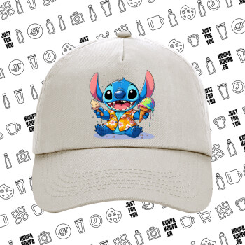 Stitch Ice cream, Μπεζ (SAND) Πεντάφυλλο Καπέλο Ενηλίκων Βαμβακερό (UNISEX, ONE SIZE)
