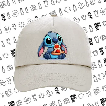 Stitch Pizza, Μπεζ (SAND) Πεντάφυλλο Καπέλο Ενηλίκων Βαμβακερό (UNISEX, ONE SIZE)