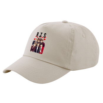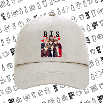 BTS hearts, Μπεζ (SAND) Πεντάφυλλο Καπέλο Ενηλίκων Βαμβακερό (UNISEX, ONE SIZE)