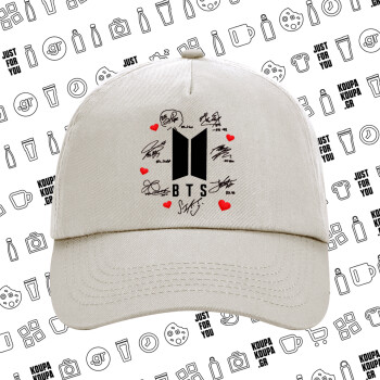 BTS signs, Μπεζ (SAND) Πεντάφυλλο Καπέλο Ενηλίκων Βαμβακερό (UNISEX, ONE SIZE)