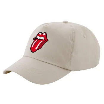 Rolling Stones Kiss, Μπεζ (SAND) Πεντάφυλλο Καπέλο Ενηλίκων Βαμβακερό (UNISEX, ONE SIZE)