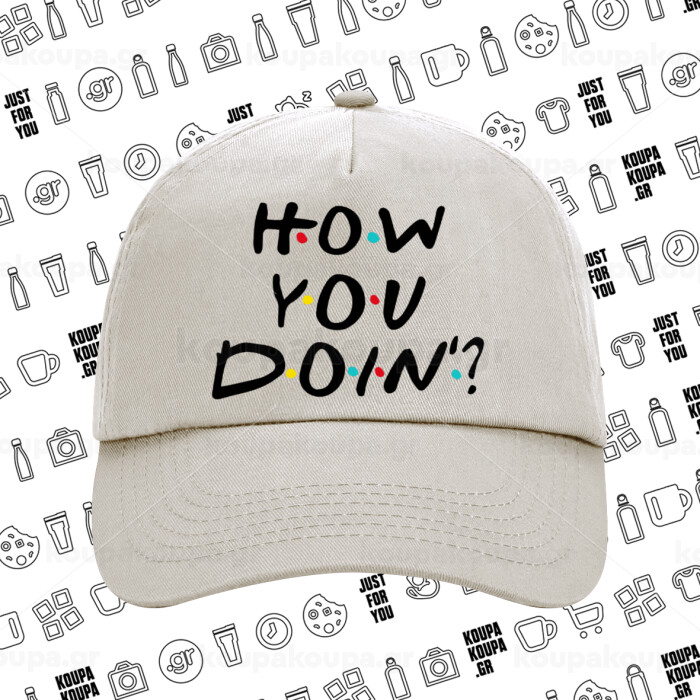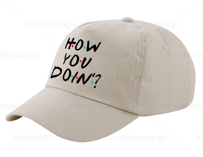 Friends How You Doin'?, Μπεζ (SAND) Πεντάφυλλο Καπέλο Ενηλίκων Βαμβακερό (UNISEX, ONE SIZE)