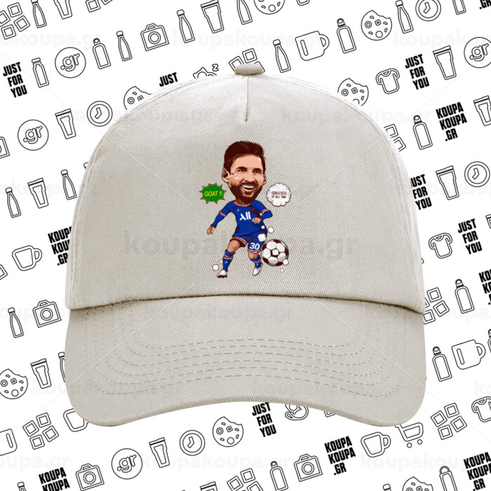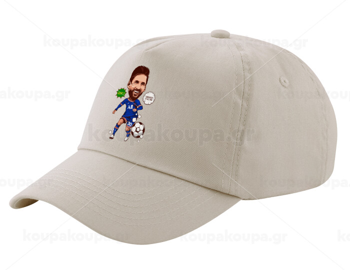 Lionel Messi drawing, Μπεζ (SAND) Πεντάφυλλο Καπέλο Ενηλίκων Βαμβακερό (UNISEX, ONE SIZE)
