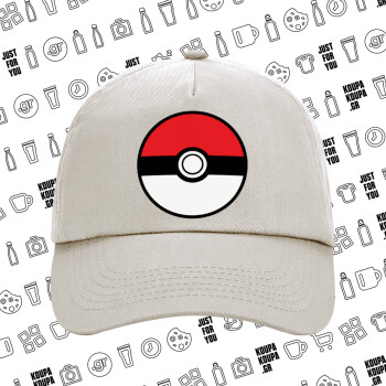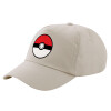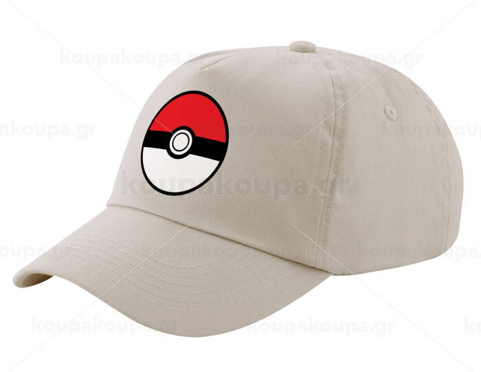 Pokemon ball, Μπεζ (SAND) Πεντάφυλλο Καπέλο Ενηλίκων Βαμβακερό (UNISEX, ONE SIZE)