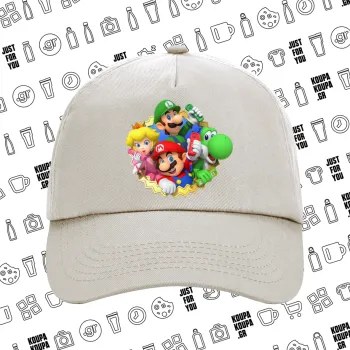 Super mario and Friends, Μπεζ (SAND) Πεντάφυλλο Καπέλο Ενηλίκων Βαμβακερό (UNISEX, ONE SIZE)
