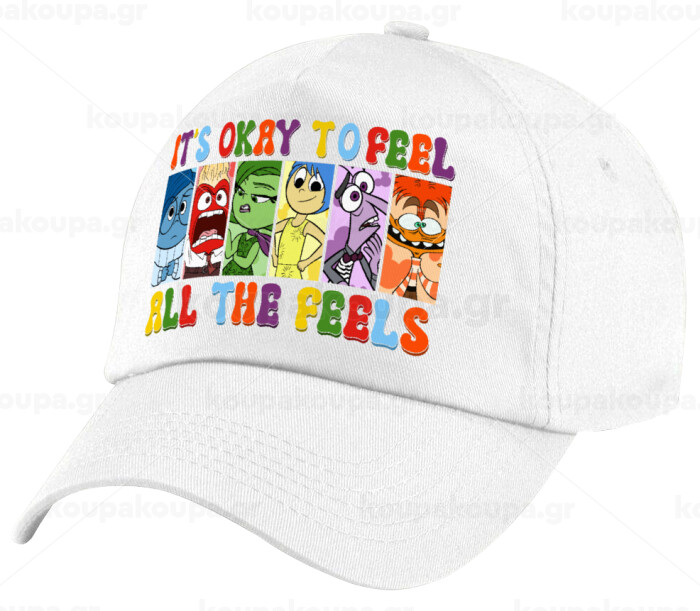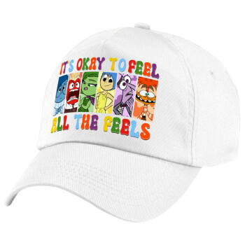 Inside Out It's Okay To Feel All The Feels , Πεντάφυλλο καπέλο Λευκό, 100% Βαμβακερό (Twill), με ρύθμιση, unisex