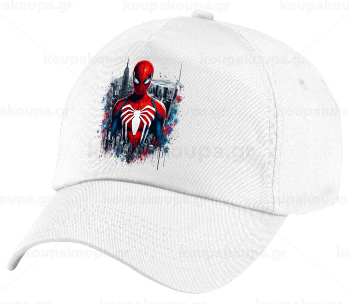 Spiderman City, Πεντάφυλλο καπέλο Λευκό, 100% Βαμβακερό (Twill), με ρύθμιση, unisex