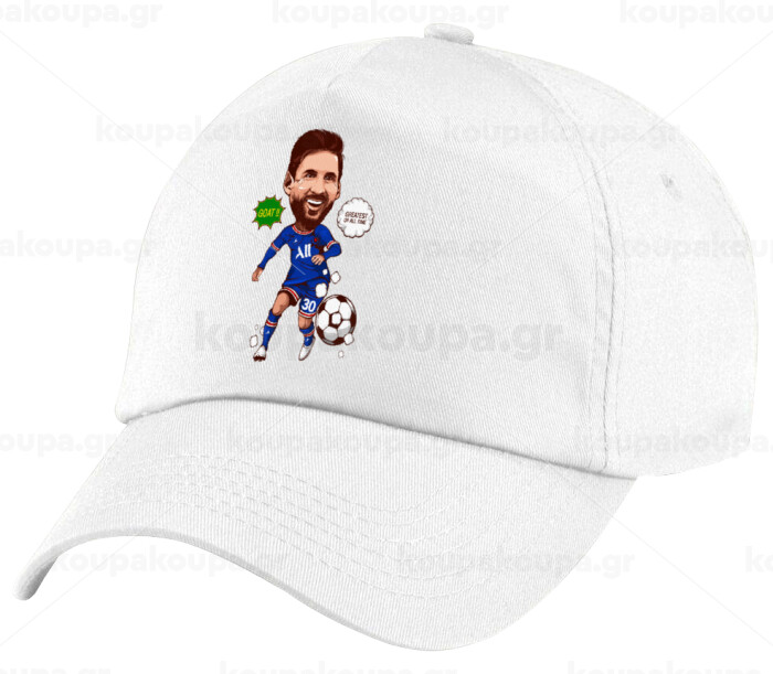 Lionel Messi drawing, Πεντάφυλλο καπέλο Λευκό, 100% Βαμβακερό (Twill), με ρύθμιση, unisex