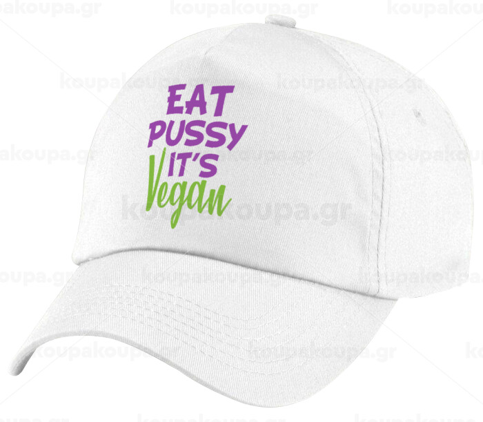 EAT pussy it's vegan, Πεντάφυλλο καπέλο Λευκό, 100% Βαμβακερό (Twill), με ρύθμιση, unisex