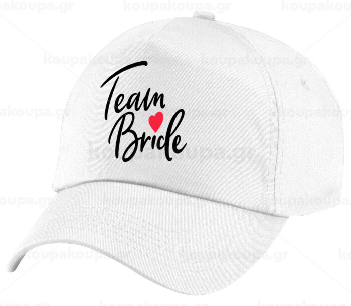 Team Bride red heart, Πεντάφυλλο καπέλο Λευκό, 100% Βαμβακερό (Twill), με ρύθμιση, unisex