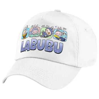 Labubu, Πεντάφυλλο καπέλο Λευκό, 100% Βαμβακερό (Twill), με ρύθμιση, unisex