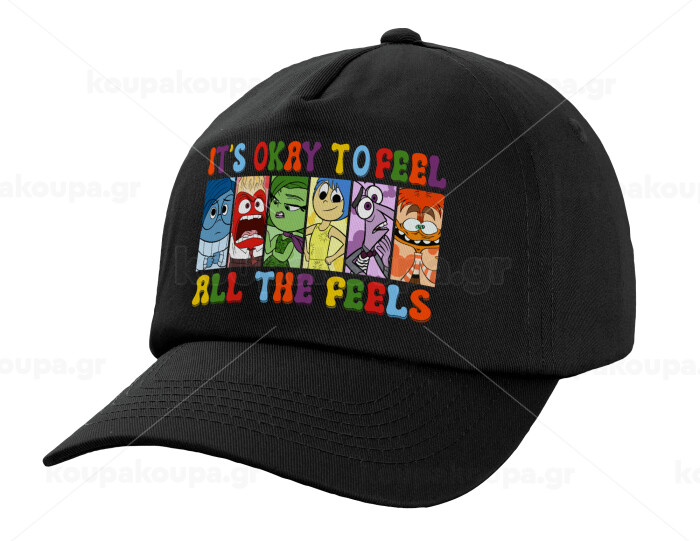 Inside Out It's Okay To Feel All The Feels , Καπέλο Ενηλίκων Baseball, 100% Βαμβακερό, Μαύρο (ΒΑΜΒΑΚΕΡΟ, ΕΝΗΛΙΚΩΝ, UNISEX, ONE SIZE)