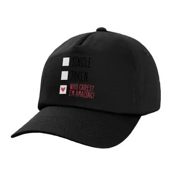 Single, Taken, Who cares i'm amazing, Καπέλο Ενηλίκων Baseball, 100% Βαμβακερό, Μαύρο (ΒΑΜΒΑΚΕΡΟ, ΕΝΗΛΙΚΩΝ, UNISEX, ONE SIZE)