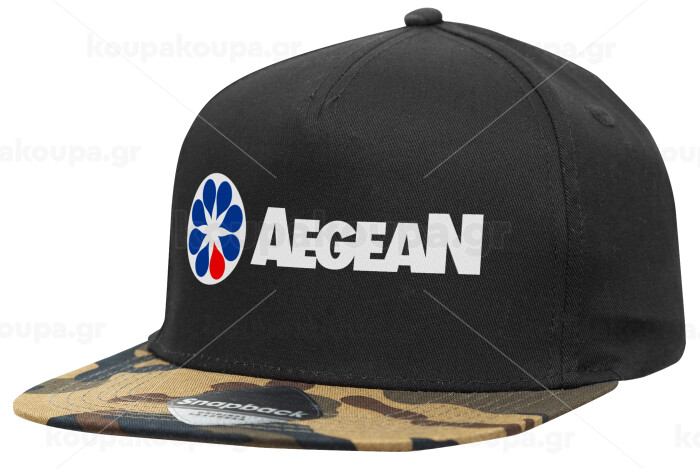 Πρατήριο καυσίμων AEGEAN, Καπέλο Ενηλίκων Flat Snapback Μαύρο/Παραλλαγή, (100% ΒΑΜΒΑΚΕΡΟ TWILL, ΕΝΗΛΙΚΩΝ, UNISEX, ONE SIZE)