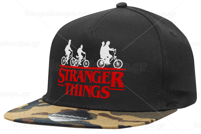 Stranger Things red, Καπέλο Ενηλίκων Flat Snapback Μαύρο/Παραλλαγή, (100% ΒΑΜΒΑΚΕΡΟ TWILL, ΕΝΗΛΙΚΩΝ, UNISEX, ONE SIZE)