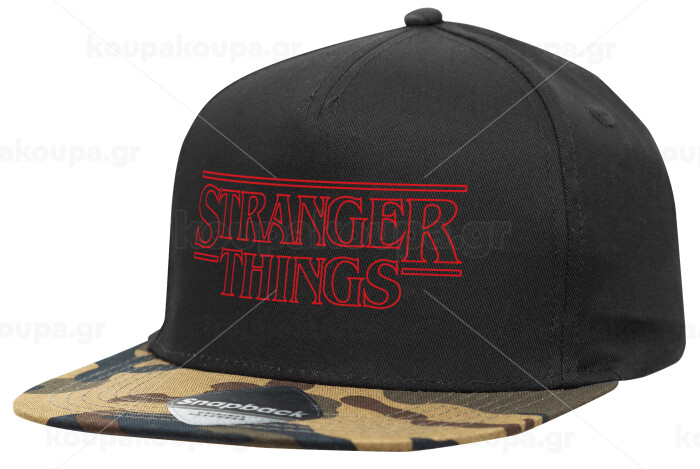 Stranger Things Logo, Καπέλο Ενηλίκων Flat Snapback Μαύρο/Παραλλαγή, (100% ΒΑΜΒΑΚΕΡΟ TWILL, ΕΝΗΛΙΚΩΝ, UNISEX, ONE SIZE)