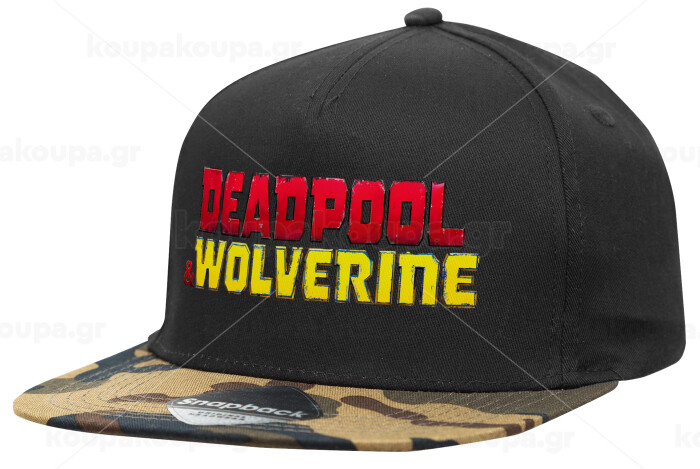 Superhero Deadpool Wolverine, Καπέλο Ενηλίκων Flat Snapback Μαύρο/Παραλλαγή, (100% ΒΑΜΒΑΚΕΡΟ TWILL, ΕΝΗΛΙΚΩΝ, UNISEX, ONE SIZE)