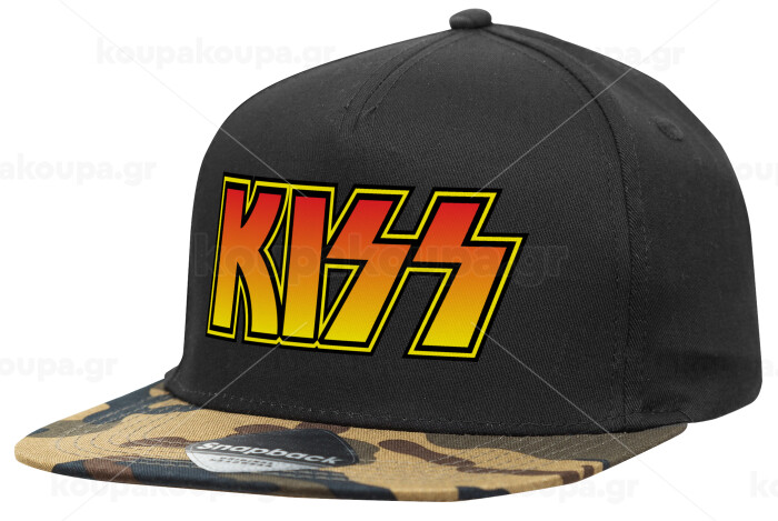 KISS, Καπέλο Ενηλίκων Flat Snapback Μαύρο/Παραλλαγή, (100% ΒΑΜΒΑΚΕΡΟ TWILL, ΕΝΗΛΙΚΩΝ, UNISEX, ONE SIZE)