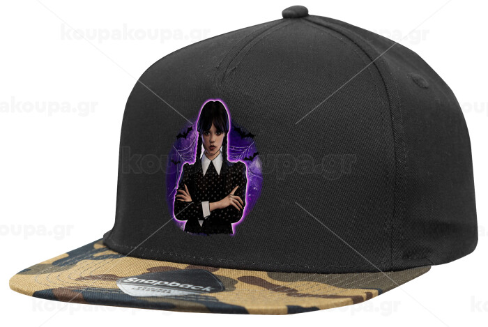Wednesday moonlight, Καπέλο Ενηλίκων Flat Snapback Μαύρο/Παραλλαγή, (100% ΒΑΜΒΑΚΕΡΟ TWILL, ΕΝΗΛΙΚΩΝ, UNISEX, ONE SIZE)