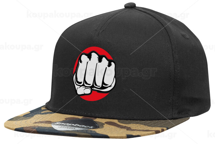 Γροθιά (punch), Καπέλο Ενηλίκων Flat Snapback Μαύρο/Παραλλαγή, (100% ΒΑΜΒΑΚΕΡΟ TWILL, ΕΝΗΛΙΚΩΝ, UNISEX, ONE SIZE)