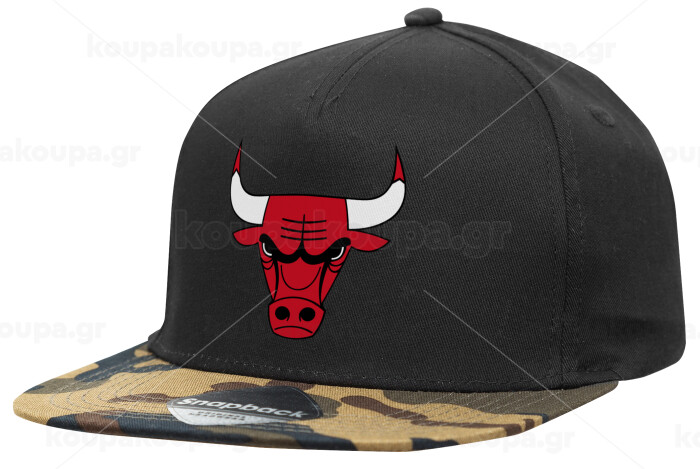 Chicago Bulls, Καπέλο Ενηλίκων Flat Snapback Μαύρο/Παραλλαγή, (100% ΒΑΜΒΑΚΕΡΟ TWILL, ΕΝΗΛΙΚΩΝ, UNISEX, ONE SIZE)