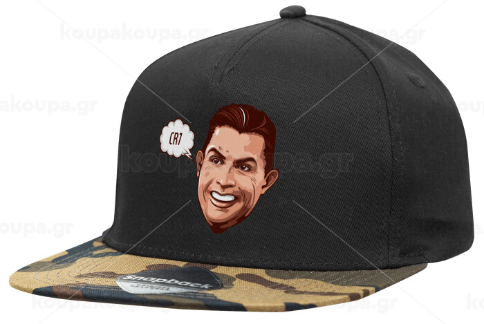 Cristiano Ronaldo, Καπέλο Ενηλίκων Flat Snapback Μαύρο/Παραλλαγή, (100% ΒΑΜΒΑΚΕΡΟ TWILL, ΕΝΗΛΙΚΩΝ, UNISEX, ONE SIZE)