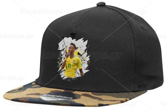 Neymar JR, Καπέλο Ενηλίκων Flat Snapback Μαύρο/Παραλλαγή, (100% ΒΑΜΒΑΚΕΡΟ TWILL, ΕΝΗΛΙΚΩΝ, UNISEX, ONE SIZE)