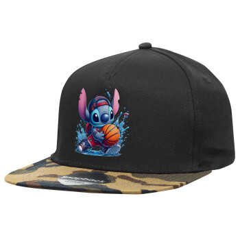 Stitch Basketball, Καπέλο Ενηλίκων Flat Snapback Μαύρο/Παραλλαγή, (100% ΒΑΜΒΑΚΕΡΟ TWILL, ΕΝΗΛΙΚΩΝ, UNISEX, ONE SIZE)