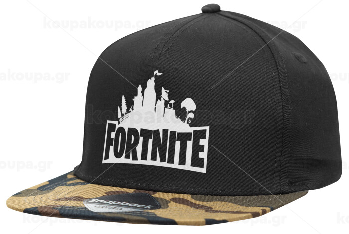 Fortnite, Καπέλο Ενηλίκων Flat Snapback Μαύρο/Παραλλαγή, (100% ΒΑΜΒΑΚΕΡΟ TWILL, ΕΝΗΛΙΚΩΝ, UNISEX, ONE SIZE)