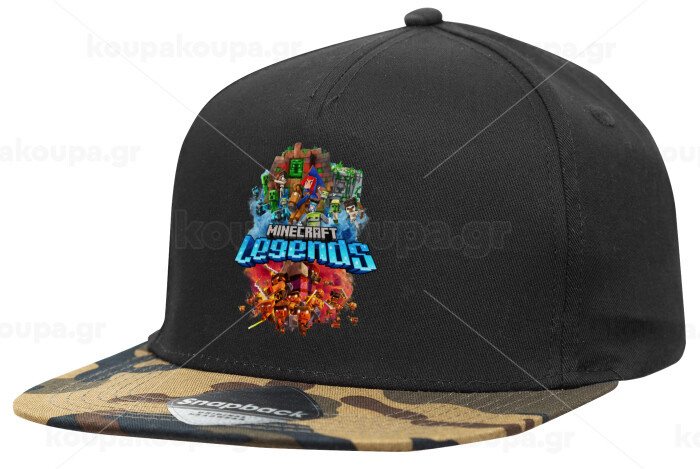 Minecraft legends, Καπέλο Ενηλίκων Flat Snapback Μαύρο/Παραλλαγή, (100% ΒΑΜΒΑΚΕΡΟ TWILL, ΕΝΗΛΙΚΩΝ, UNISEX, ONE SIZE)